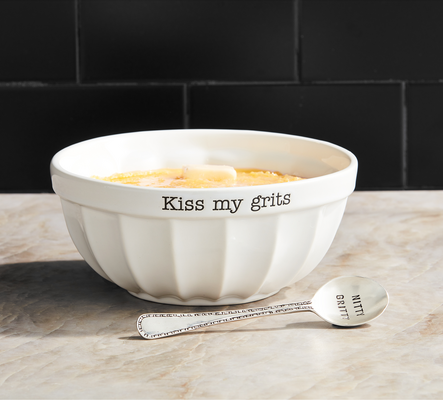 The Grits Bowl Set comprises of a ceramic bowl with a textured surface and a silverplate spoon with a stamped design. This set is perfect for daily use as the ceramic bowl is both dishwasher and microwave safe. Crafted from dolomite, it not only serves its purpose but also enhances the sophistication of your dining moments.