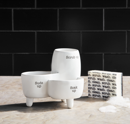 The Sink Sponge Caddy 2-piece set is an essential and fashionable addition to your kitchen sink. Crafted from sturdy ceramic, this sink caddy can accommodate a dish brush, soap pump, and even includes a foam sponge. The ceramic material is both dishwasher and microwave safe, ensuring effortless cleaning and convenient heating. With its elegant design and useful features, this sink caddy is a necessary tool for maintaining an organized and tidy sink area.