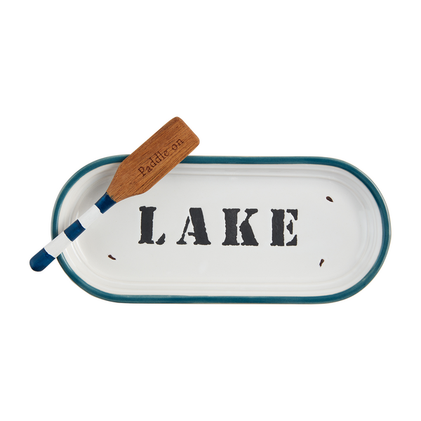 The Lake Retreat Everything Plate 2-piece set brings a delightful touch to your kitchen. With exquisite hand-painted designs, these plates elevate your dining experience with a touch of sophistication. The set also includes a wooden oar spreader, meticulously hand-painted and engraved, ideal for spreading butter or dips. Crafted from sturdy stoneware, these plates are both dishwasher and microwave safe, ensuring convenience for your everyday needs. Enhance your table with a hint of rustic charm by adding this stunning set.