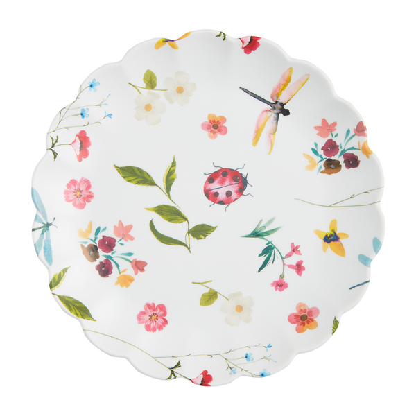 The White Floral Melamine Plate is crafted from sturdy melamine, making it resistant to shattering. Its exquisite scallop rim design brings a touch of refinement to any dining arrangement. Whether it's a casual outdoor picnic, a lively party, or simply everyday use, this plate effortlessly combines style and functionality. Thanks to its durable melamine construction, it is a reliable choice for both children and those prone to accidents. The elegant white floral pattern further elevates the aesthetic appeal of any meal.