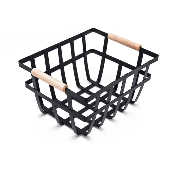 Kitchen Storage Metal Basket with Wooden Built-in Handles.