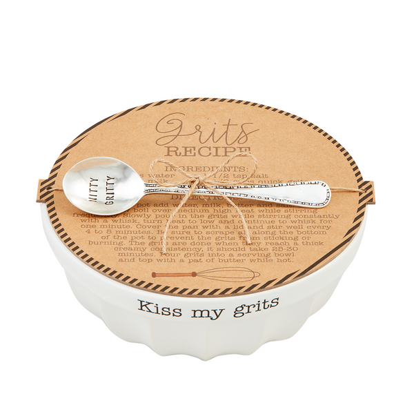The Grits Bowl Set comprises of a ceramic bowl with a textured surface and a silverplate spoon with a stamped design. This set is perfect for daily use as the ceramic bowl is both dishwasher and microwave safe. Crafted from dolomite, it not only serves its purpose but also enhances the sophistication of your dining moments.