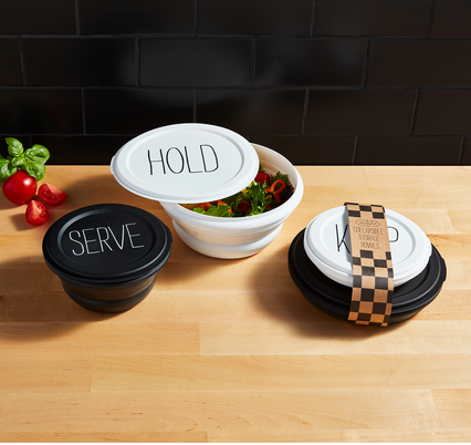 The Serve Collapsible Storage Bowl Set offers a practical and convenient solution for all your storage requirements. This set comprises of two collapsible silicone storage bowls with lids, ensuring effortless storage and transportation of your food. Crafted from high-quality silicone, these bowls are not only durable but also flexible and easy to clean. The collapsible design allows for compact storage when not in use. With the secure lids, your food remains fresh and there are no worries about spills or leaks. These storage bowls are ideal for leftovers, packed lunches, or snacks on the go. Whether you're at home or on the move, the Serve Collapsible Storage Bowl Set is a versatile and space-saving solution for all your storage needs.