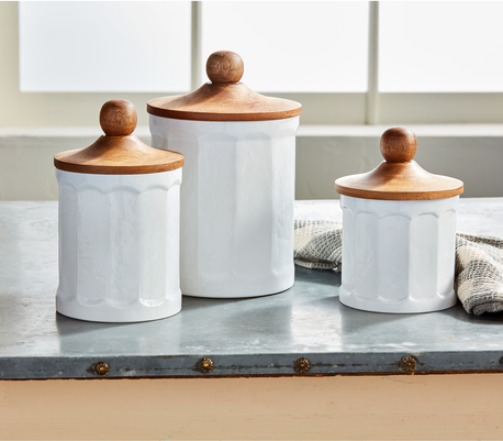 The Milk Glass Canister Set comprises three exquisite canisters crafted from fluted milk glass. Each canister is equipped with a mango wood lid that is gasketed to provide an airtight seal, preserving the freshness of your food. The set encompasses small, medium, and large canisters, each available at a wholesale price. Cleaning is effortless, requiring only a gentle hand wash or wipe with a damp cloth, while avoiding soaking. These canisters possess not only practicality but also the ability to enhance the elegance of any kitchen decor.