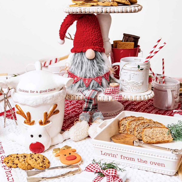 Dish up your favorite dishes with our Holiday Baker and trivet set. The three piece set comes with a ceramic baking dish. The baker dish reads "Lovin' from the oven" on the outside. The dish comes with a cotton pot holder that reads "Christmas Calories don't count". The set also includes a wood and metal spoon that reads "Dish it up". Crazing is a natural feature of ceramics that occurs over time, if your item begins to craze, don't worry! This item is still food safe.