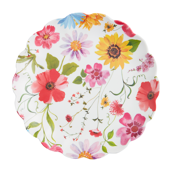 The White Floral Melamine Plate is crafted from sturdy melamine, making it resistant to shattering. Its exquisite scallop rim design brings a touch of refinement to any dining arrangement. Whether it's a casual outdoor picnic, a lively party, or simply everyday use, this plate effortlessly combines style and functionality. Thanks to its durable melamine construction, it is a reliable choice for both children and those prone to accidents. The elegant white floral pattern further elevates the aesthetic appeal of any meal.