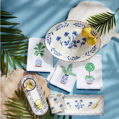 The Blue Painted Dip And Tray Set is a 3-piece set that combines style and functionality. With a stoneware tray adorned with a beautifully hand-painted rim, it adds an elegant touch to any table setting. The set includes a dip bowl and a brass finished metal spreader, making it ideal for serving dips and spreads. Crafted from durable stoneware, this set is not only visually appealing but also designed to withstand the test of time. Whether you're hosting a party or having a relaxed meal, this set is an essential addition to your kitchenware collection.